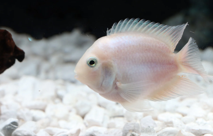 Snow White Parrot Cichlids thrive in well-filtered aquariums with open swimming space and hiding spots such as caves or driftwood. Their striking appearance and friendly nature make them a favorite among aquarists. 🌿