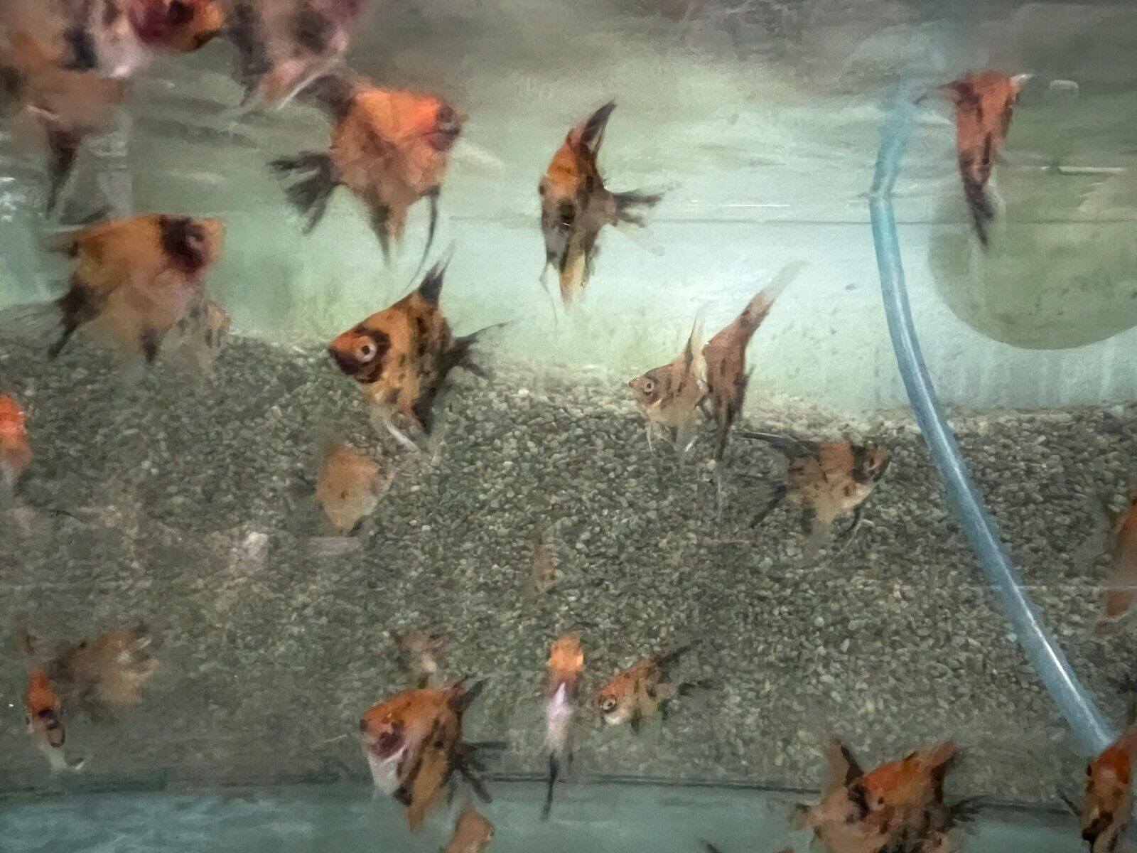 The Red Devil Angelfish is a stunning and vibrant variant of the freshwater angelfish species. With its fiery red-orange hues and graceful, elongated fins, this angelfish is sure to be the centerpiece of any aquarium. Known for their bold coloration and regal appearance, Red Devil Angelfish make an eye-catching and captivating addition to both beginner and experienced aquarists’ tanks. 🔥