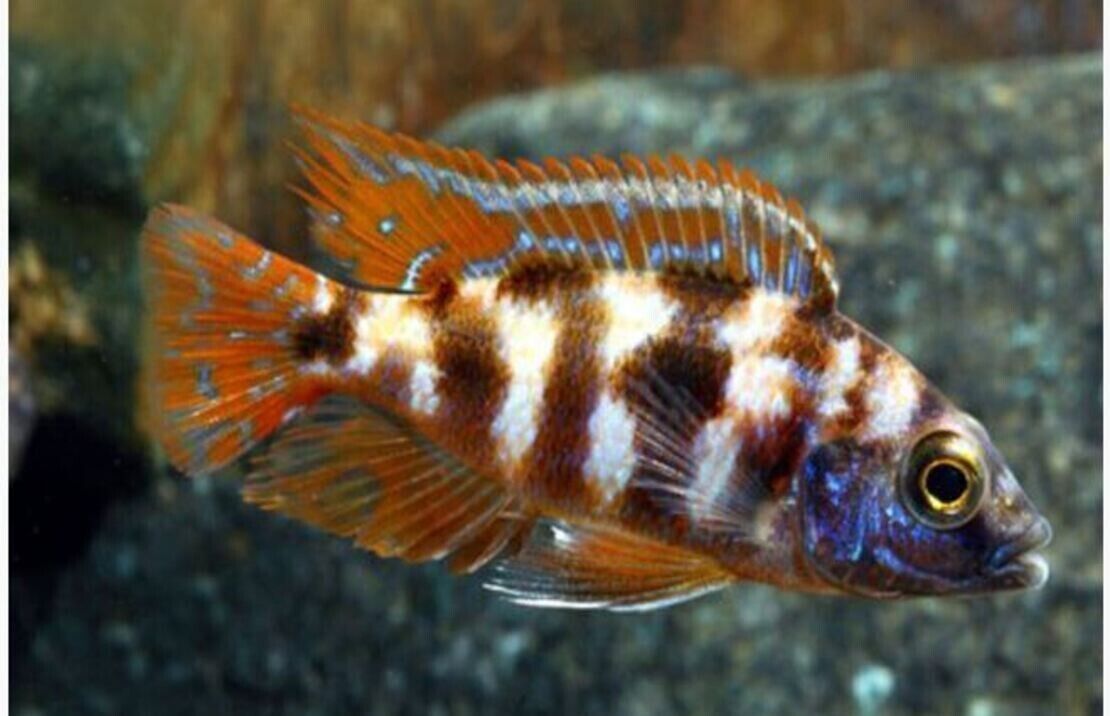- Diet: Carnivorous – high-quality cichlid pellets, flakes, live/frozen foods like shrimp and krill