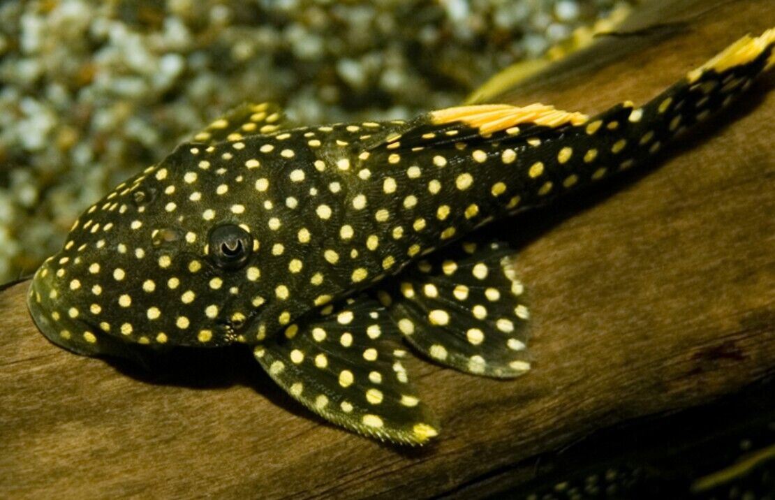 The Golden Nugget Pleco thrives in aquariums with plenty of hiding spots like caves and driftwood, where it can graze on algae and feel secure. Though peaceful, this pleco prefers a well-decorated tank with strong water flow to mimic its natural habitat in the Rio Xingu. Their vibrant golden-yellow spots make them a show-stopping addition, especially under good lighting. 🌿