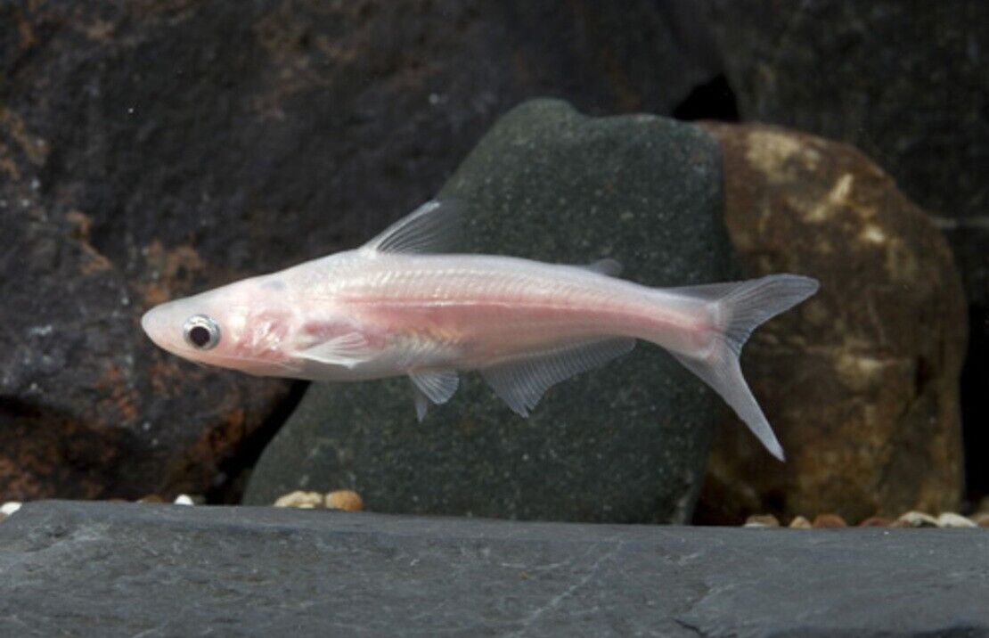 The Albino Iridescent Shark is a large and active freshwater fish from the rivers of Southeast Asia. Known for its sleek, shark-like appearance and iridescent body, it is a popular choice among experienced aquarists who can accommodate its considerable size and dynamic behaviors.